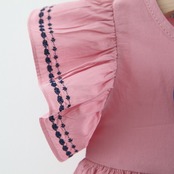 シンプルながらも特徴的なデザインで、肩のフリルと胸元のリボンが洗練されたデザインを引き立てます。